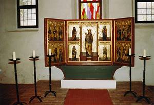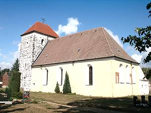 Die Kirche "St. Mauritius" wurde im 12. Jh. als Wehrkirche aus Feldsteinen erbaut. Über mehrere Jahrhunderte trug der Turm eine welsche Haube mit Laterne. Jetzt ist er, ähnlich der Zeit seiner Entstehung, mit einem Walmdach abgeschlossen. In der Kirche befindet sich die Statue des heiligen Mauritius aus dem 16. Jh. 2 der 3 Glocken sind von 1439, eine trägt ein Relief des heiligen Mauritius in sitzender Haltung mit Fahne.
